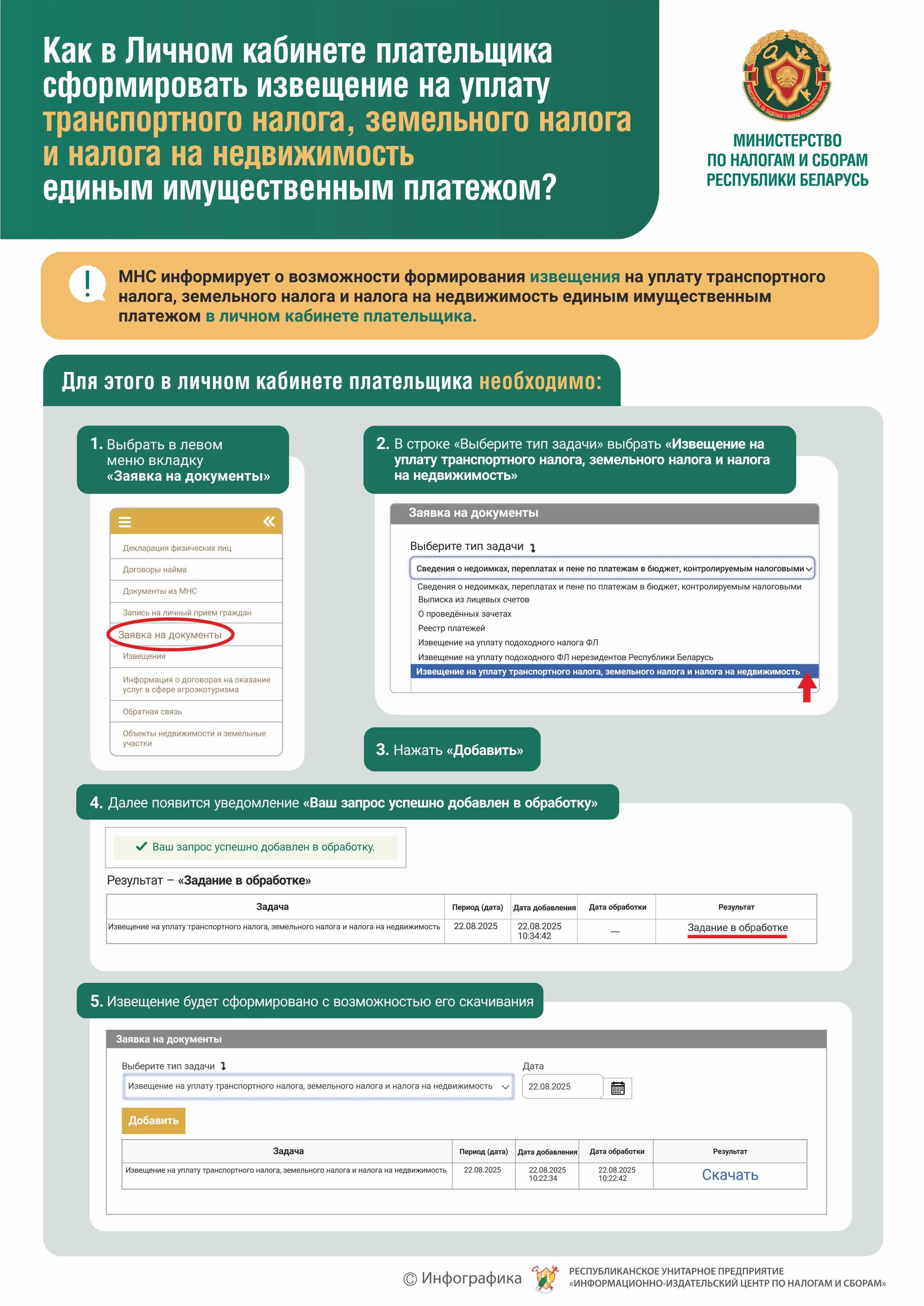 Информация о возможности формирования извещения на уплату физическими лицами имущественных налогов в личном кабинете плательщика