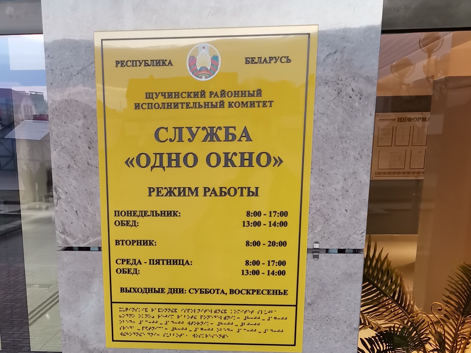 Служба «одно окно» располагается по адресу: г. Щучин, пл. Свободы 11, 1 этаж, тел.: 2-15-37, 2-15-38, 2-15-39, 142.